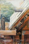 Wow, do I love painting old industrial objects and metal and wood textures. This is a closeup of an old hit-and-miss engine loved and maintained by a cousin in Pennsylvania. I hope, I HOPE he doesn't repaint it!