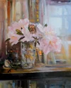 One of the oils I did a few years back; they often depicted floppy old fashioned azaleas, those big ones I have in my yard. These were brought to me by my oldest and begged to be painted.