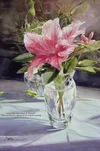 This was from quite a few years ago. Watercolor was my first medium, I loved it so much, and still do. This was a piece inspired by my mom's rhododendrons, soaking up the sun.