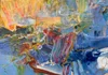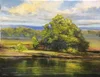 Jeweled Water, Acrylic on CanvasThis is a return to an old obsession for me, and at the same time an attempt to distill a scene to its impressionistic patches of color and light. It never gets old to me, and I can hear music and feel like angels are near when I see shimmering water like this. This ethereal feeling is the reason for the fanciful colors - not far from reality, but nudged and emphasized to convey what I feel.