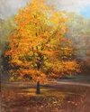 “Quiet Fall”This recently completed acrylic painting depicts a gorgeous sugar maple along the driveway I travel every day. It’s actually on my parents’ property and sits just off the gravel path. Some years it is magnificent, and some years in the fall it just sort of fades away. This last fall wasn’t a particularly colorful one,so it’s possible I exaggerated the colors of this little tree, but it was only done to remember it at its fiery best.Its done on standard stretches canvas and you can see it for sale of ebay right now (see the link to my Ebay listings on my “about me” page. (Or click here)