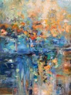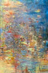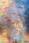 Etheria: Fall Water, Acrylic on Gallery Canvas, 24" x 36"Maybe it’s the shimmering movement and light of water, but it makes me feel full of wonder and appreciation for the otherworldly and the heavenly. Water reflections seem to be a frequent subject for me lately, and this painting is unusual for me in that it features the primaries blue, yellow and red. I think it gives it its boldness and ability to be appreciated from a distance. I hope that the details are intriguing when you get up close.